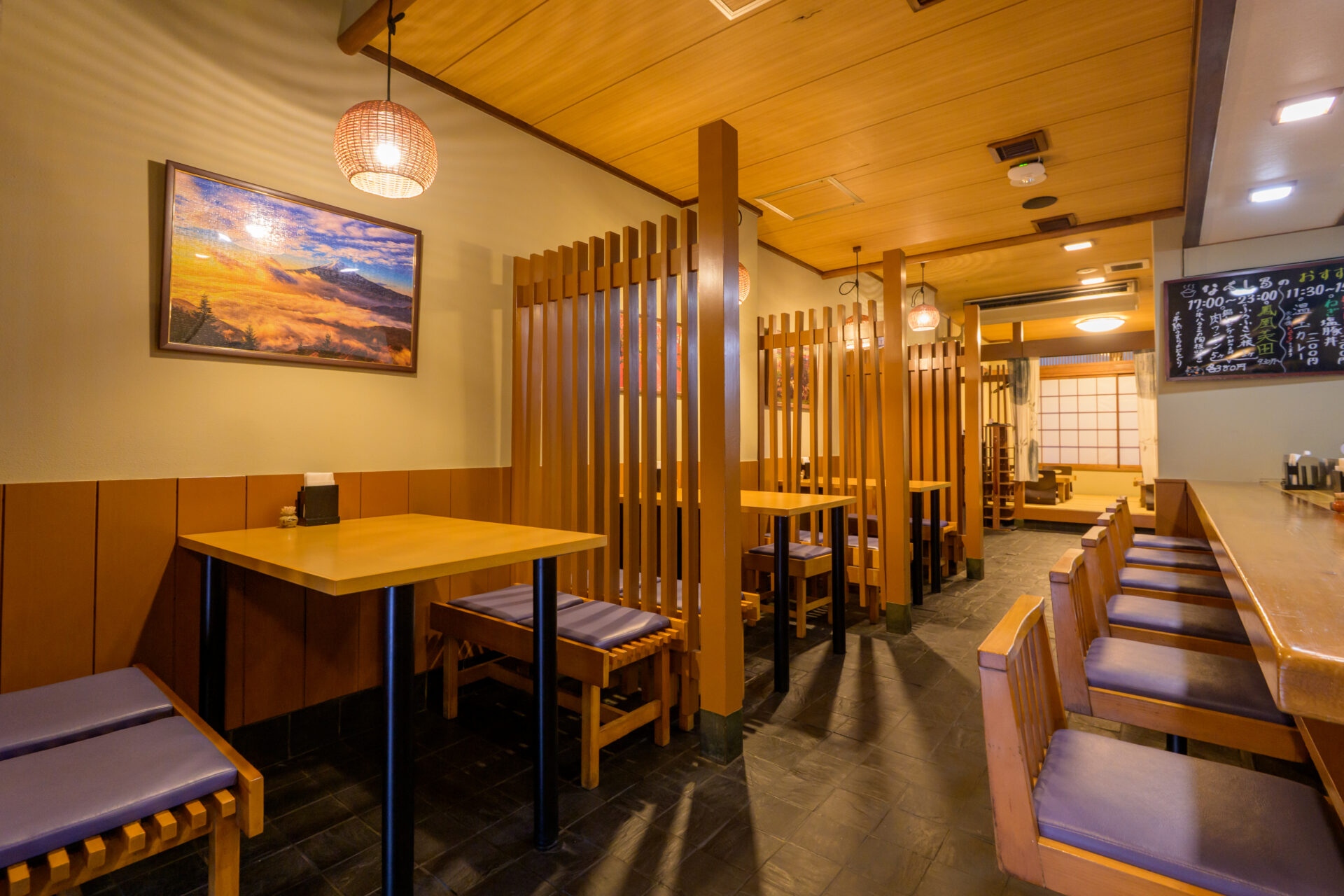 お一人様でも気軽にご利用いただけるよう、カウンター席を完備。静かにひとり時間を楽しみたい方にも最適です。ご家族やご友人とのお食事にはお座敷席もあり、お子様連れでも安心してご利用いただけます。気の合う仲間との食事会や、大切な方とのお食事など、さまざまなシーンでお使いいただける和食店です。